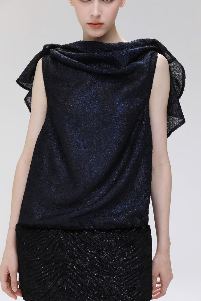Material: Blue Metallic Chiffon & Faux Horsehair